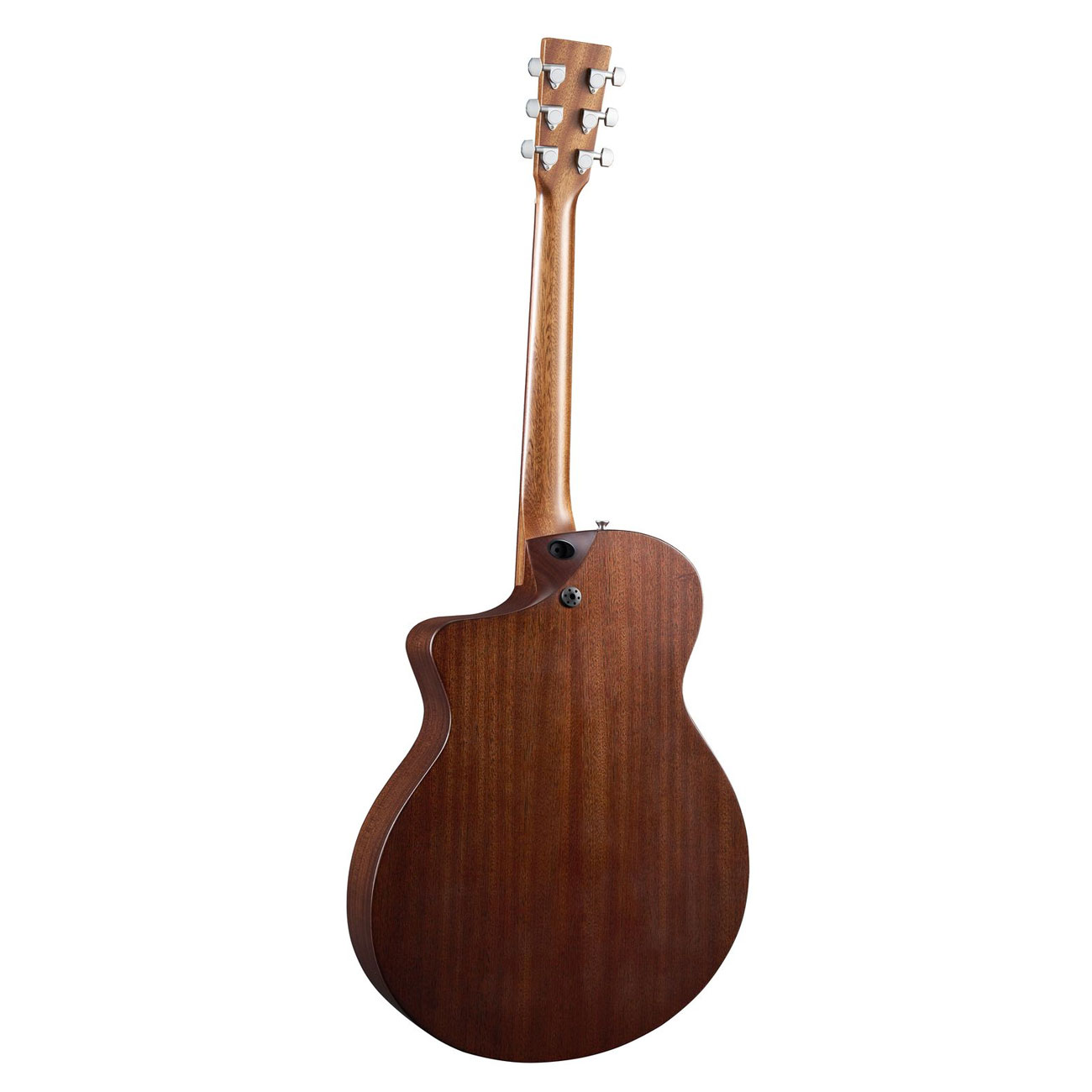 Construida completamente con sapele sólido, la Martin SC-10E Modern ofrece un sonido equilibrado y musical. Sus medios son ricos y definidos, los agudos mantienen claridad y aire, y el conjunto responde con naturalidad tanto al rasgueo como al fingerstyle o ejecuciones solistas. El acabado satinado Dark Mahogany no solo aporta una estética sobria y elegante, también permite que la madera vibre libremente, mejorando la respuesta dinámica del instrumento.