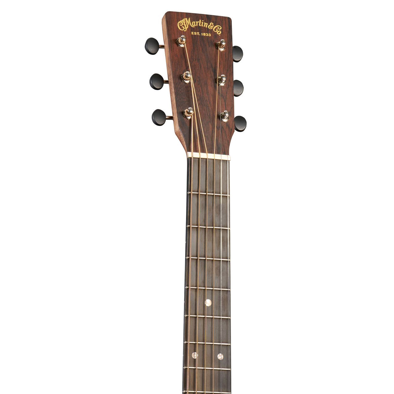 El acabado Satin con Aging Toner, el binding negro y los afinadores abiertos estilo vintage evocan la estética clásica de Martin. A nivel ergonómico, el mástil Performing Artist con High-Performance Taper ofrece una sensación rápida y fluida, favoreciendo la comodidad en sesiones largas. Su ancho de cejuela de 1 3/4” brinda espacio extra para acordes amplios, digitación precisa y estilos que requieren detalle.